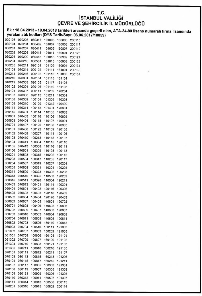 Tehlikeli Atık Taşıma Firma Kodları