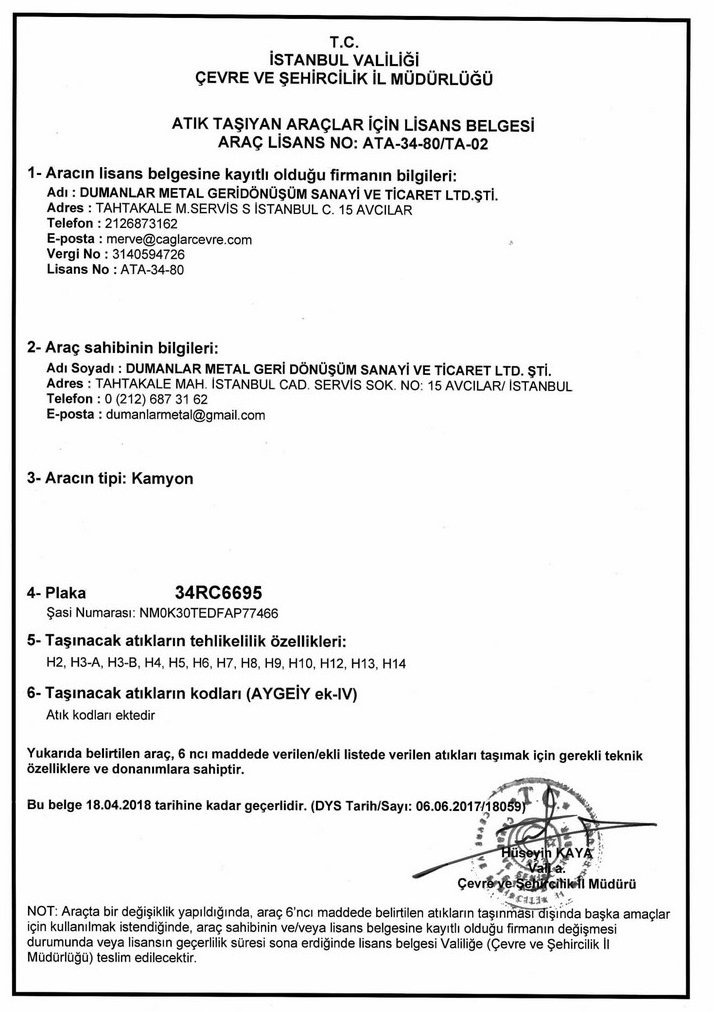 DUMANLAR METAL GERİ DÖNÜŞÜM SAN.TİÇ.LTD.ŞTİ