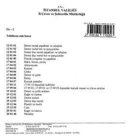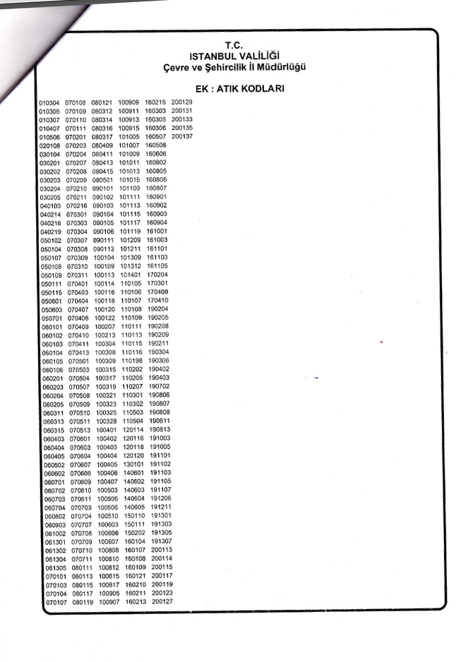 Tehlikesiz Atık Toplama Ayırma Kodları 3