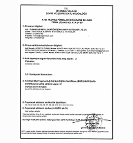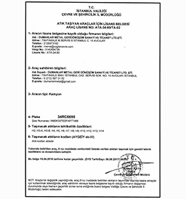 Çöp Taşıma Yetki Belgesi