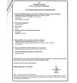 Tehlikeli Atık Taşıma Firma Lisansı