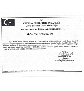Metal Hurda İthalatçı Belgesi