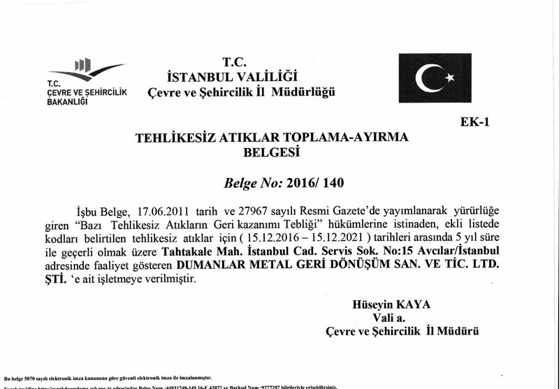 DUMANLAR METAL GERİ DÖNÜŞÜM SAN.TİÇ.LTD.ŞTİ