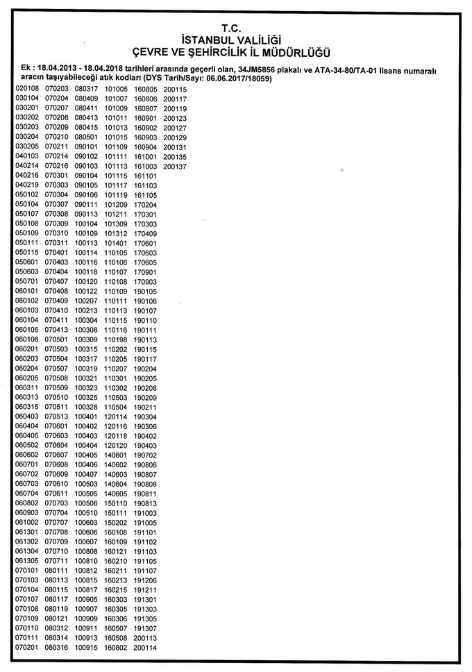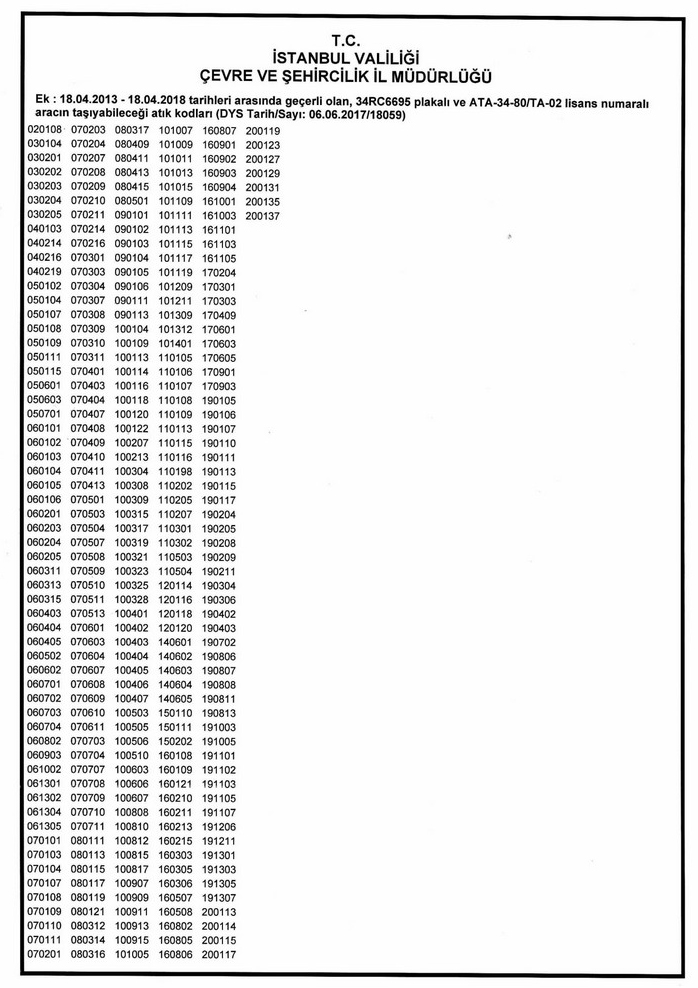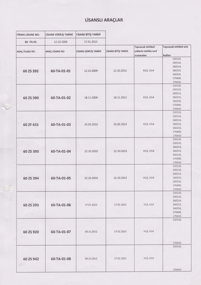 Tehlikeli Atık Taşıma Firma Kodları