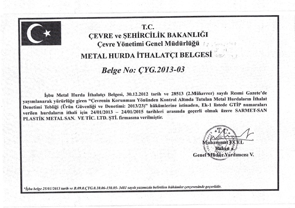 Metal Hurda İthalatçı Belgesi