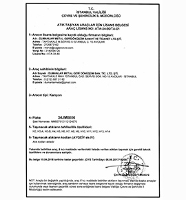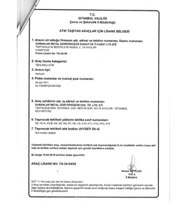Çöp Taşıma Yetki Belgesi