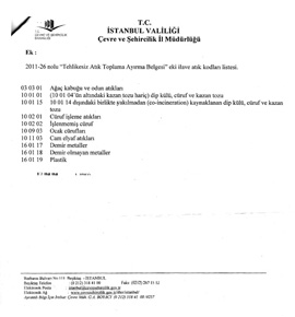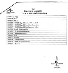 Tehlikesiz Atık Toplama Ayırma Kodları 3